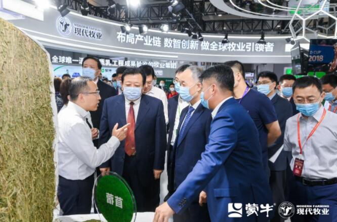听完孙玉刚的介绍后,巡展领导颇有兴致的观看了集团宣传短片和现场景观展示区域,从草籽到育种,从数字化到双碳目标,一一进行关切的询问,并对现代牧业的超前发展理念和愿景予以高度肯定。农业农村部副部长马有祥表示,现代牧业开创了中国养殖业的先河,希望在新形势下,紧跟国家经济发展脉络,增大研发力度,解决好“卡脖子”问题。刘亚清秘书长鼓励现代牧业在国家数字化转型和双碳目标的大背景下,抓住时机,找准机遇,为中国牧业扬帆出海打造样本!