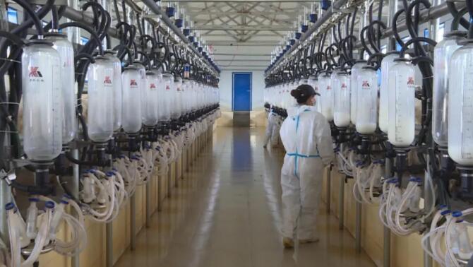 上午8点左右,经过简单的收尾处理后,罗大姐骑着电动三轮车来到不远处的卡倍多林源牧场奶站,把今早收获的羊奶送到这个集中奶站暂时储存。不久后,养可滋乳业的收奶车将会把这些羊奶统一运送到工厂生产线上进行精深加工。